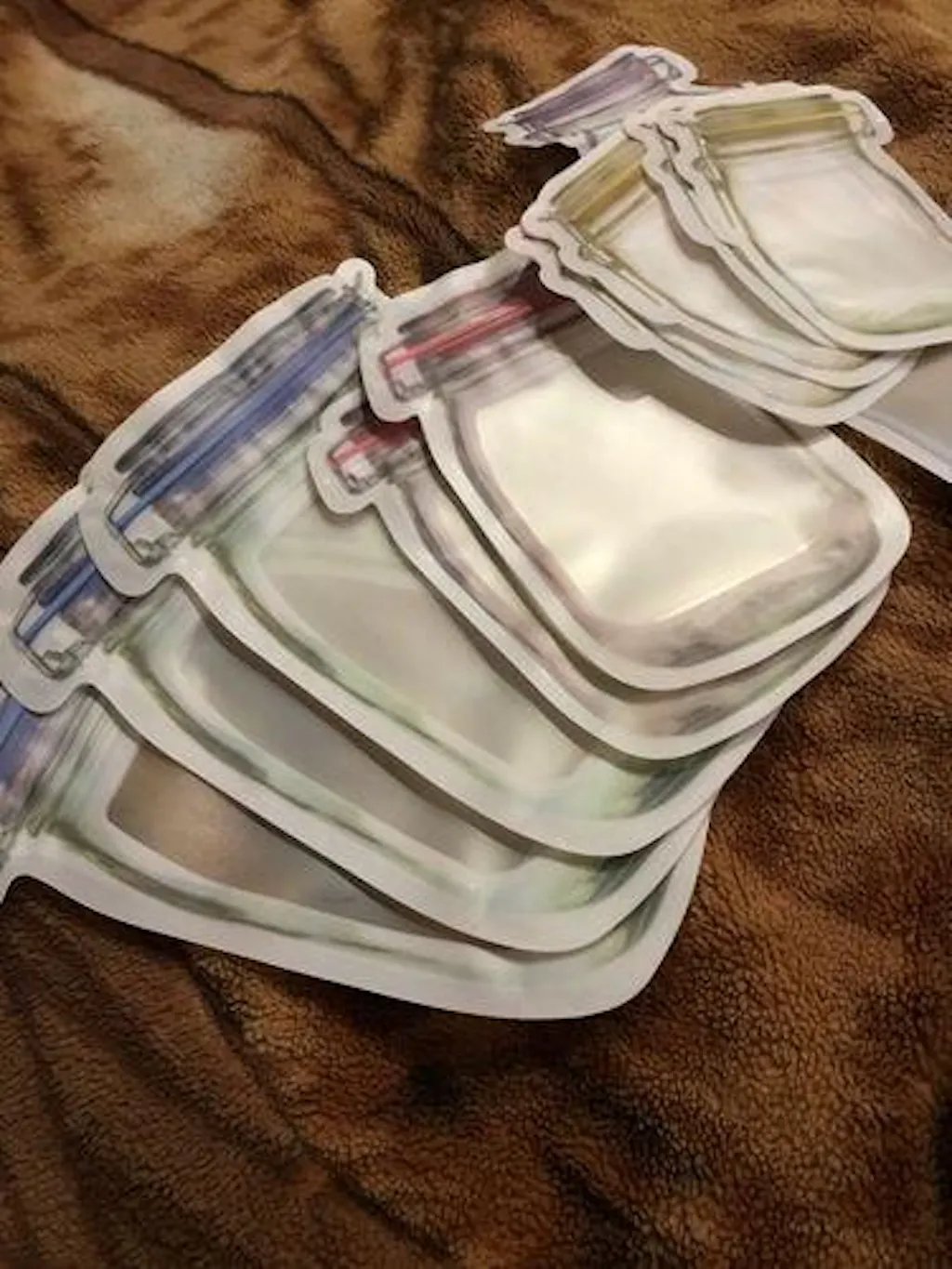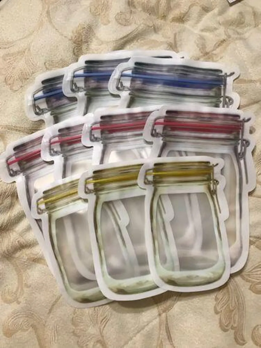 This set of 10 Reusable jar Bags is perfect for pantry storage, refrigerated storage, or snacks on the go. When brimming with dry goods and snacks, these unique storage bags stand upright, just like classic mason jars.