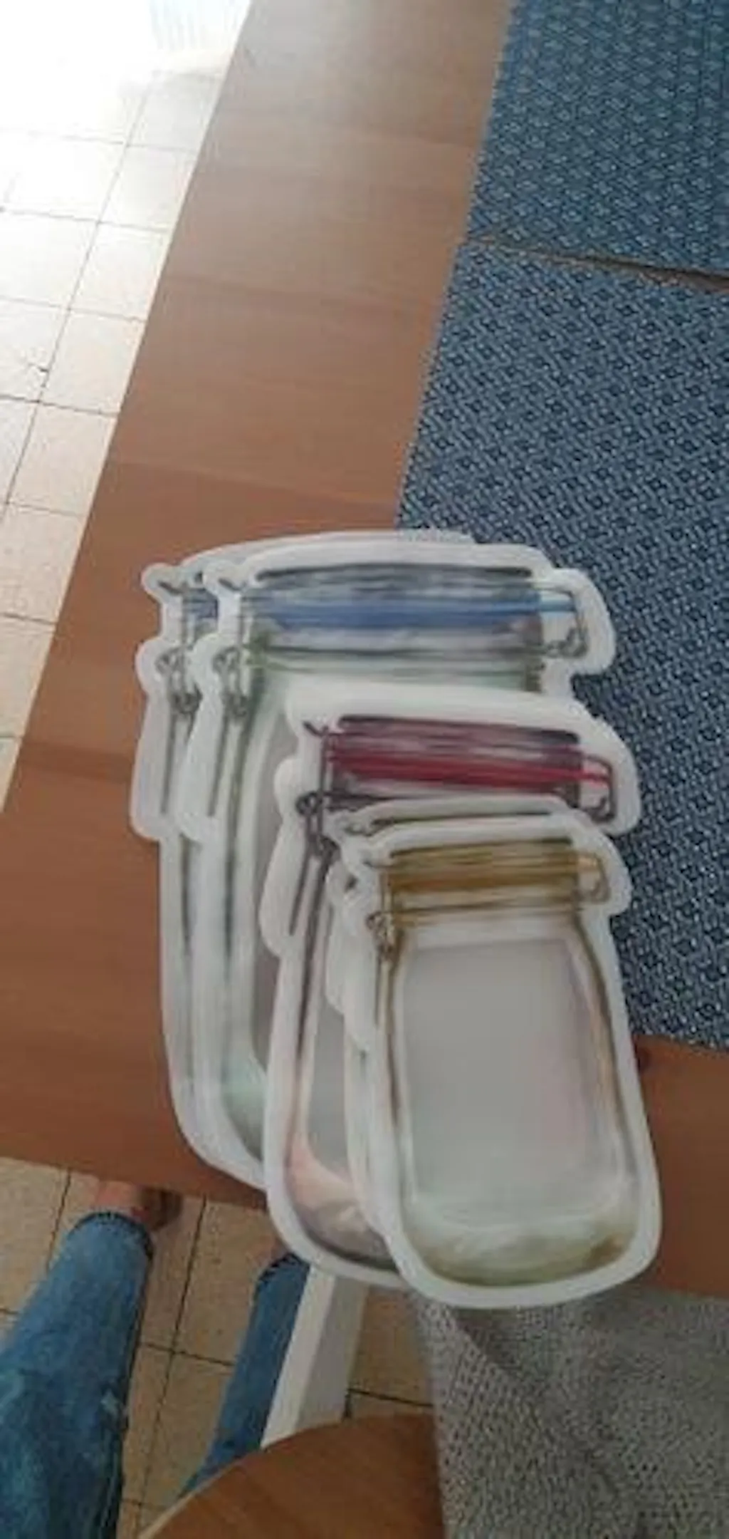 No need for heavy, breakable jars, with these bags, so carrying them with you while you're out and about is easy and safe. The clever design allows these bags to stand on their own when filled. They're dishwasher safe and durable, so you can use them over and over again! A great way to reduce clutter and waste, these eco-friendly bags are a smart alternative to regular plastic baggies.