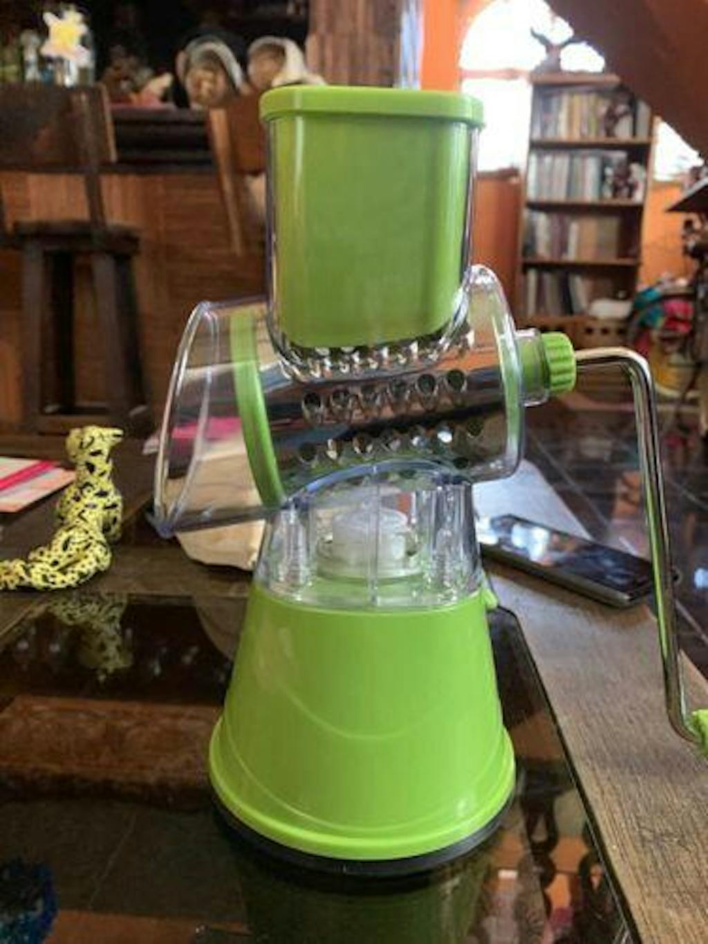 This hand-held slicer made from Food-Grade stainless-steel & BPA-Free ABS plastic offers.It uses all the functionality of multiple devices with adjustable stainless blades. These blades can cut through all type of veggie, grating cheese, slicing potato and cutting fruits, even can create paste-like vegetables or mashed potatoes.