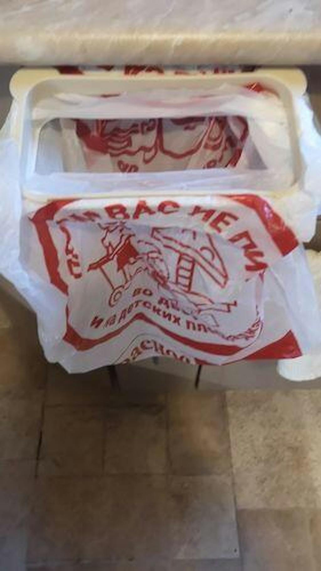The unique design enables quick and easy installation of those free plastic bags. Simply slip the handles of the plastic bag into the slots and it's ready to go!
